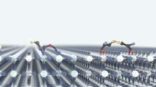 Cysteine molecules adsorb onto the titanium oxide surface via various functional groups. On the far right, an astonishing new property can be seen: The formation of cysteine dimers, which can even adsorb onto the surface as dimers. (Credit: DESY, Science Communication Lab)