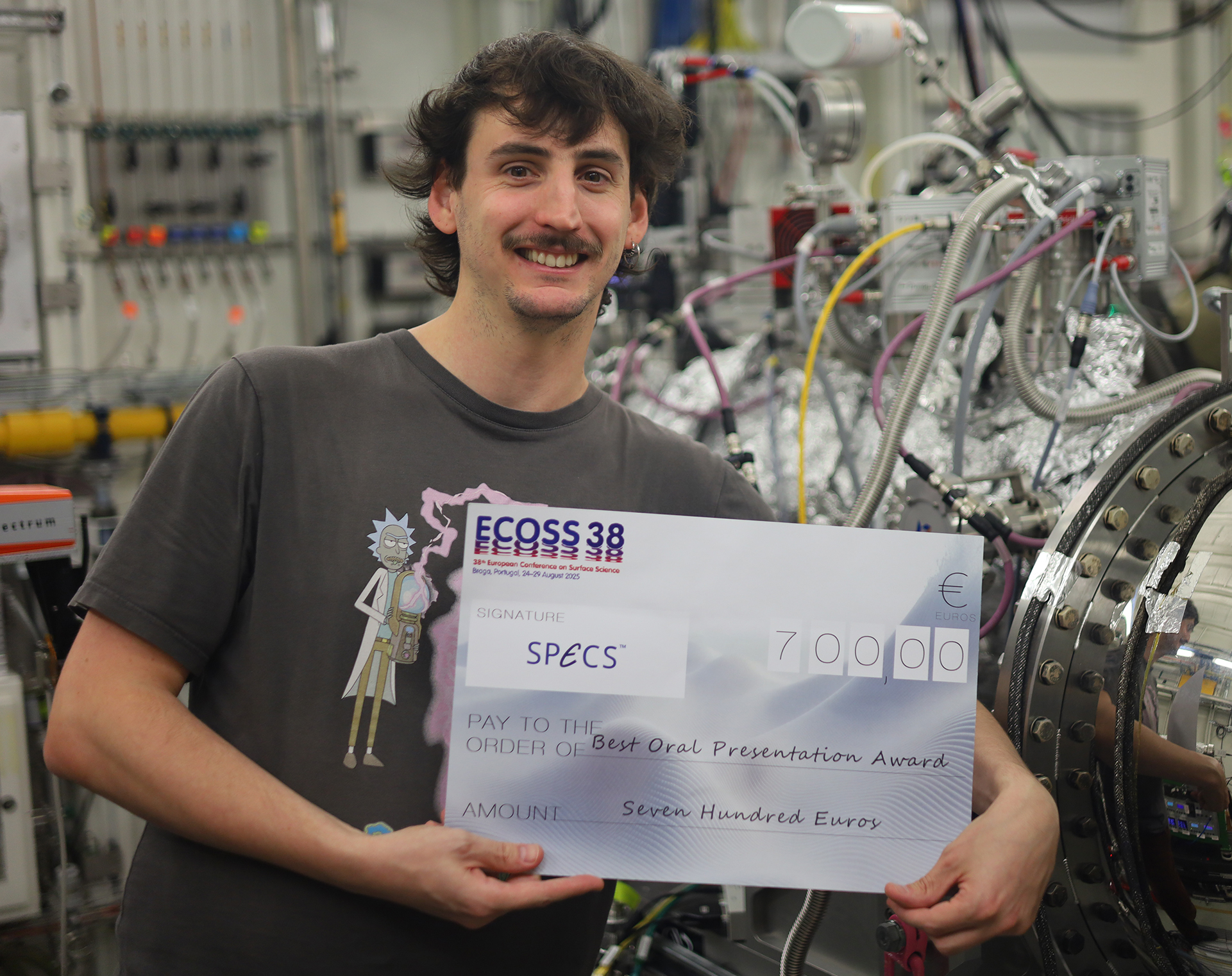 Fernando Garcia-Martinez, DESY researcher at the HAXPES beamline P22 at PETRA III, has won the best oral presentation award at the 38th European Conference on Surface Science ECOSS 38 held in Braga, Portugal from 24-29 August 2025.