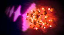 Artist's impression: Using X-ray pulses, an international team of researchers investigated how gold reacts with hydrogen and forms what is called gold hydride. (Illustration: Greg Stewart/SLAC)